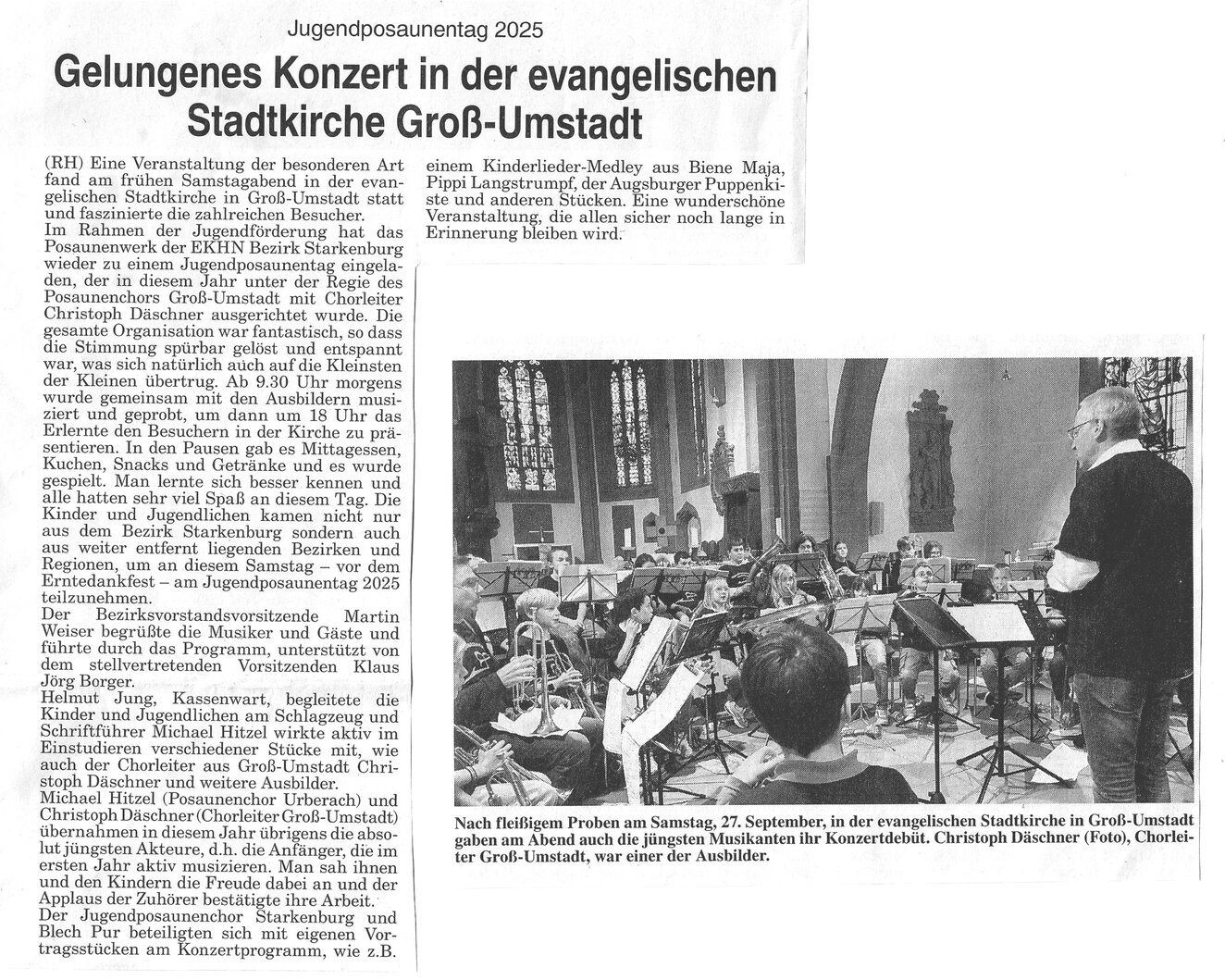 Samstagmorgen, den 27.09.2025, der Tag auf den viele hingefiebert haben. Der 12. Jugendposaunentag in der ev. Kirche in Groß-Umstadt beginnt.