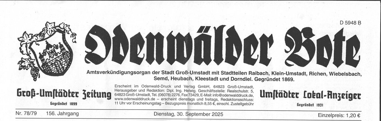 "Der Odenwälder Bote" berichtete am 30.09.2025
