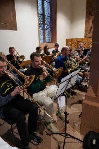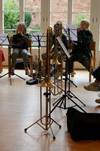 - Die Ersttonkandidaten, welche 0 bis 4 Töne können. Sie haben dieses Jahr angefangen ein Blechblasinstrument zu lernen und dies teilweise erst nach den Sommerferien. Geleitet wurde diese Gruppe von 12 Mädels und Jungs von Michael Hitzel und Christoph Däschner. Sie haben im Gemeindehaus geprobt und in rasantem Tempo 3 Stücke für das Abschlusskonzert eingeübt.